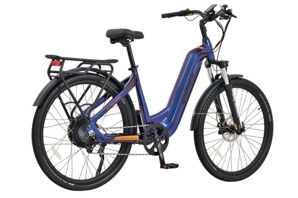 Available in Deep Cosmic Blue and Sunset Orange, the Cruiser Low Step e-bike reaches speeds up to 40km/h, making it perfect for your next adventure.